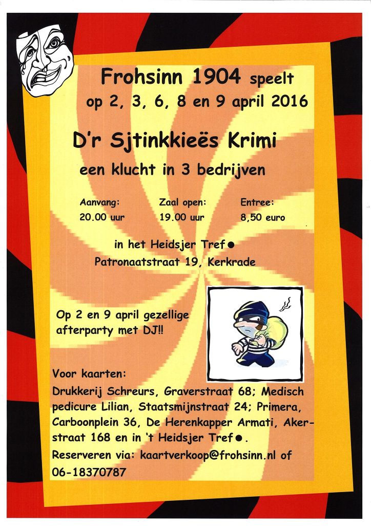 Een doldwaze klucht in 3 bedrijven in het Limburgs dialect (voornamelijk Kerkraads).